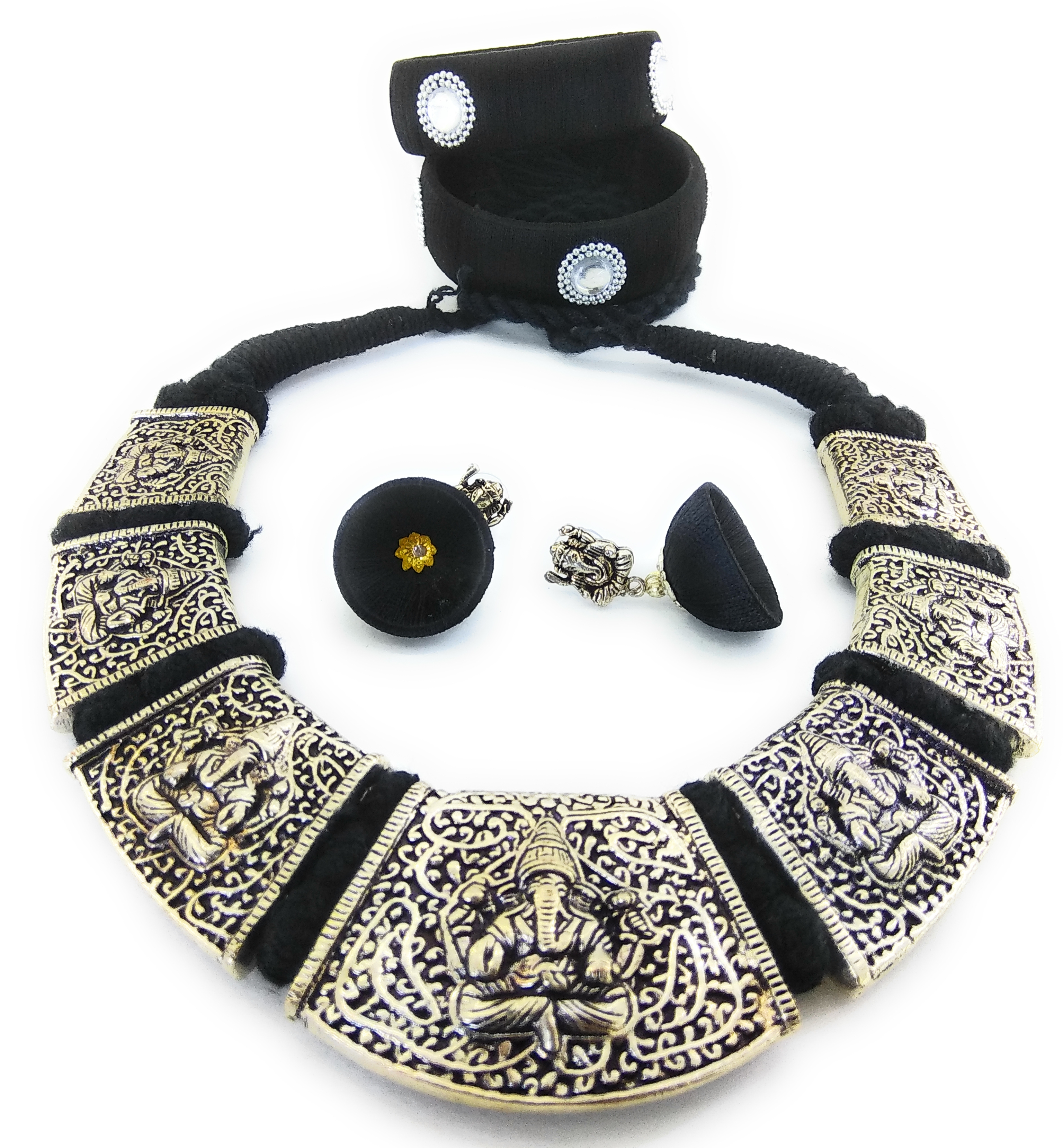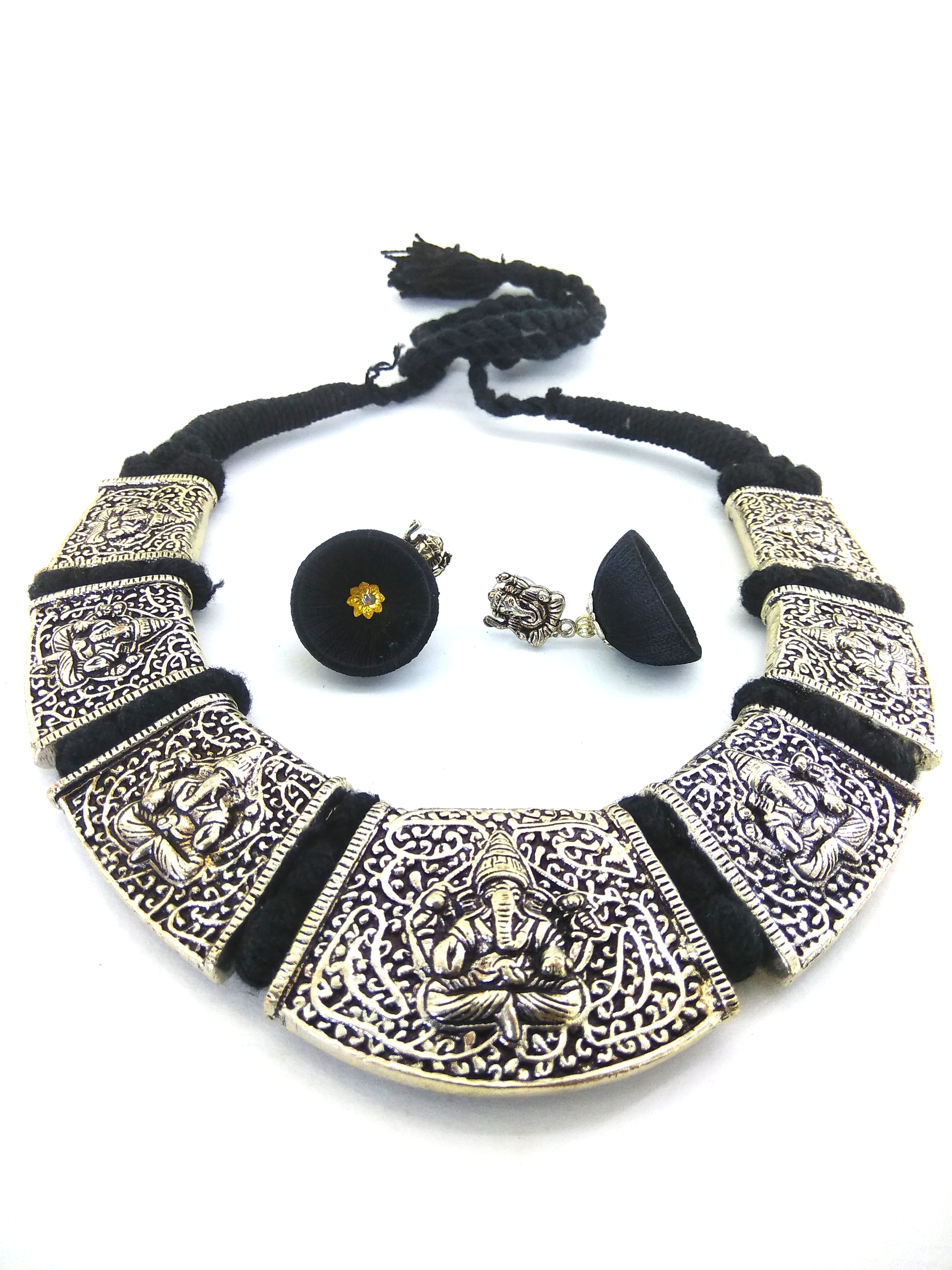 Silk Thread Necklace Set with 7 Ganesha Pendants